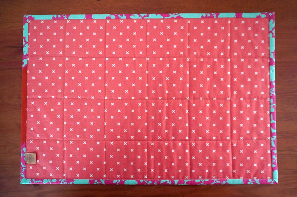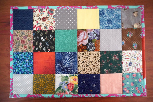 Un napperon unique, ni trop épais, ni trop mince. Peut servir comme centre de table. Fait des tissus de coton de haute qualité achetés localement, avec de la bourre de coton au milieu. Piqué à la machine dans les coutures du patchwork.
