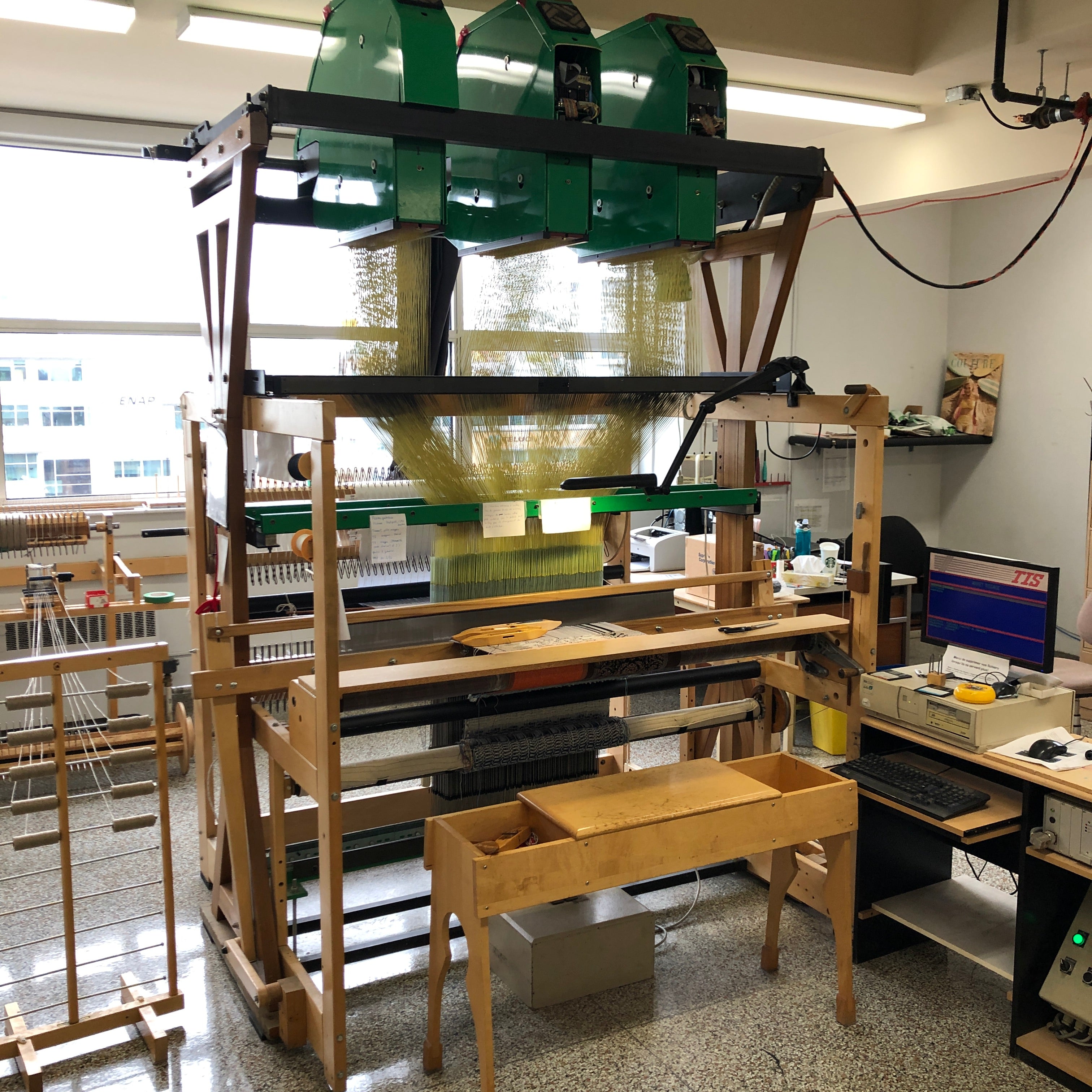 This work was born from my scientific and aesthetic interest in combining technical contrasts. Using wool hand spun on a traditional spinning wheel and industrial yarns, I wove a Jacquard tapestry on a computer-assisted loom. Thus, I combined a very simple ancestral technique, spinning, with a sophisticated and complex one, Jacquard weaving, including all the computer work that precedes it.