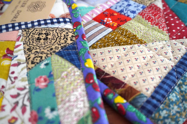 Chaque mitaine est fait avec des petits morceaux de coton et de quelques morceaux d'une étoffe tissée à la main. La double épaisseur d'une mitaine inclut: 4 couches de coton, 2 couches de bourre de coton et 2 couches de feutre en polyester.